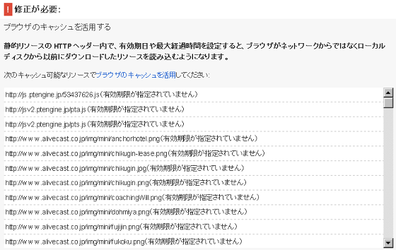 頻繁に更新されるものについては、注意が必要となりますが、これらの記述でブラウザキャッシュを用いてページの表示を行うようになります。